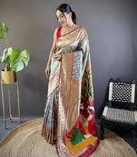 • Saree : Color- Grey / Fabric- Silk • Blouse : Color- Red / Fabric- Silk Saree Details