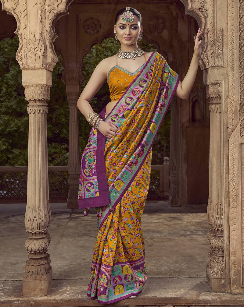 When it comes to Mirraw Designs & Styles, this saree rises to the top with its stunning detailing, eye-catching palette, and timeless elegance. It’s the perfect pick for shoppers searching for contemporary fashion with traditional finesse. Pair it with bold jewelry, a sleek clutch, and your confident smile the Mustard Patola Saree is designed to go viral, online and offline.Specifications [-]