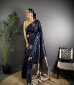 Navy Blue Lichi Blend Silk Flower Zari Weaving Banarasi Saree