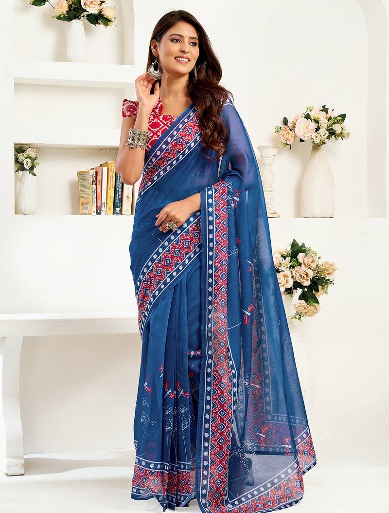 Designed for everyday wear or special moments, this ready‑to‑wear saree is perfect for trending sarees online and top ranking ethnic wear designs that modern women love to search, shop, and style. The breathable linen fabric keeps you cool and confident all day, while the artful print elevates your outfit for brunches, festive gatherings, or stylish day‑to‑night transitions. Its versatile appeal makes it one of those most popular saree picks that stands out in Mirraw designs & styles, with cultural depth and effortless elegance wrapped in every drape.