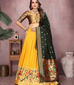 Yellow Jacquard Silk Zari Weaving Designer Stitched Paithani Lehenga For Women