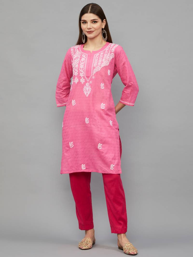Cotton Fabric Is Used To Make This Hand Crafted Chikankari Lucknavi Kurti For Women. It's Soft, Relaxed, And Comfortable Enough To Wear All Day. The Lucknowi Chiken Short Kurti Is Well Crafted, With Even Stitching And Lovely Embroidery. Because Of Its Higher Comfort And Durability, This Lucknow Kurta Looks Unique. The Fabric Quality Of Ethnava Will Not Disappoint, And This Chikan Work Kurti Is No Exception.