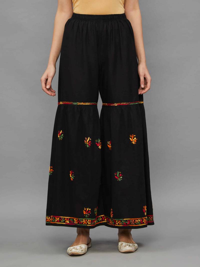 • Product Id : 3751690 • Package Details : 1 Garara • Type : Bottom Wear For Women • Occasion : Casual • Fabric : Cotton • Work : Embroidered • Color : Black • Stitching : Stitched Payments [+]