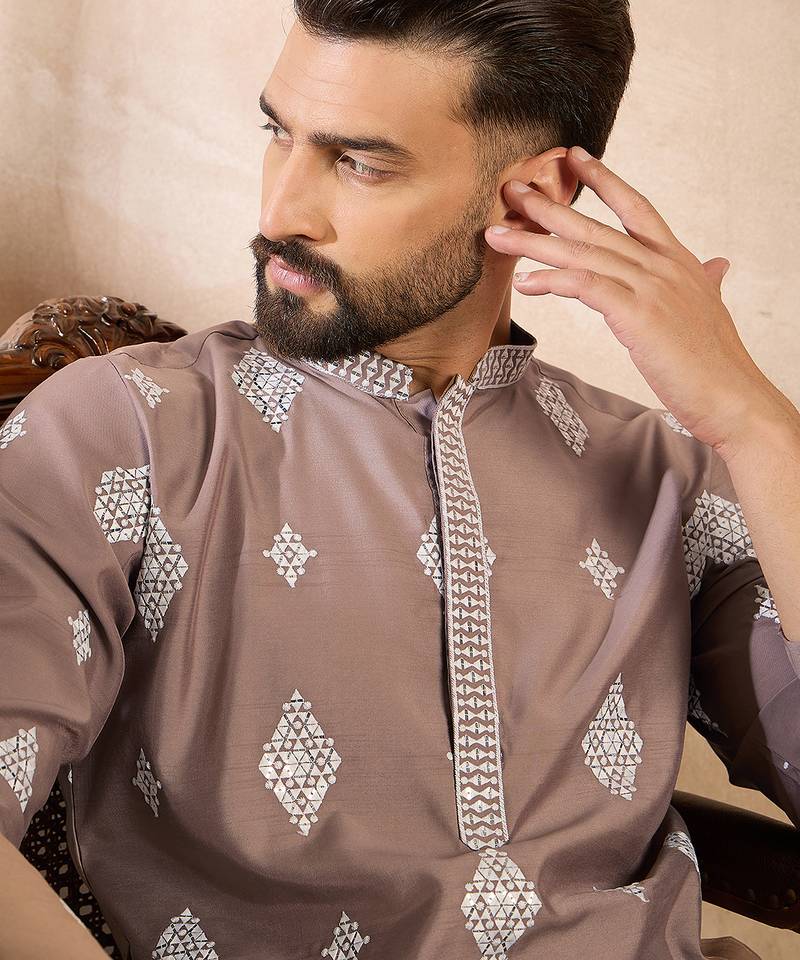 • Product Id : 4729142 • Package Details : 1 Kurta • Type : Kurta • Region : India • Work : Embroidered • Look : Traditional • Sleeve : Full Sleeve • Neck Style : Band Collar Neck Kameez • Color : Beige • Top Color : Beige • Top Fabric : Silk Blend • Fabric : Silk Blend • Stitching : Stitched Payments [+]