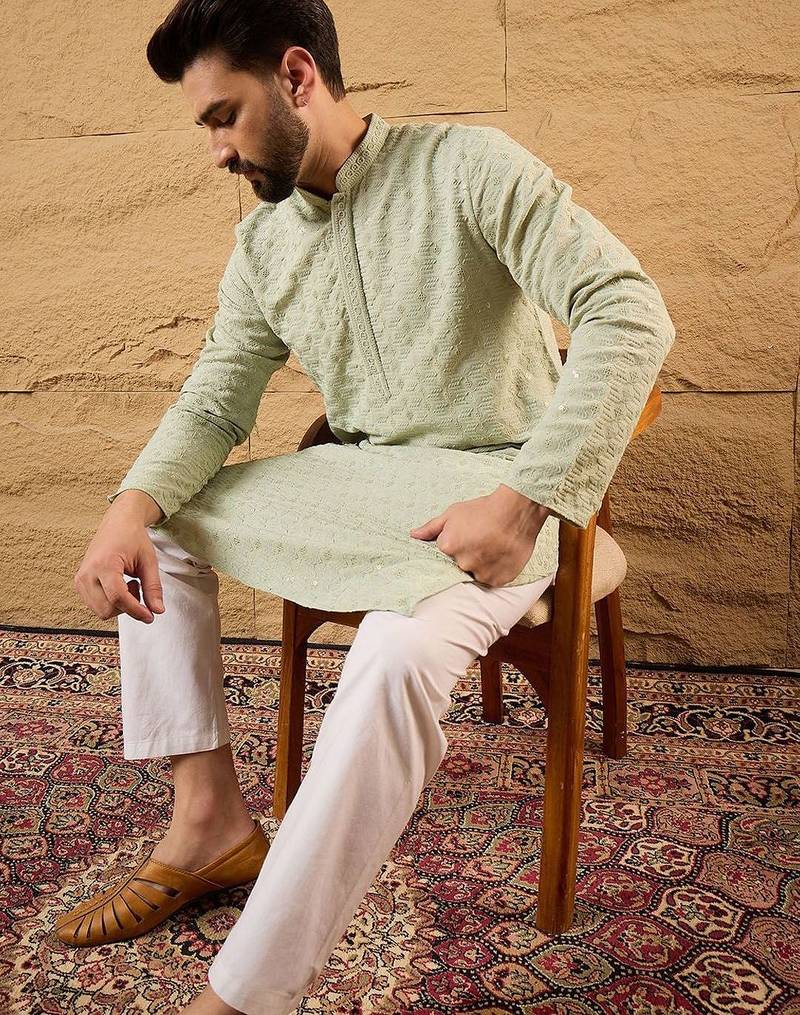 • Product Id : 4728067 • Package Details : 1 Kurta / 1 Trouser • Type : Kurta Pajama • Region : India • Work : Embroidered • Look : Traditional • Bottom Style : Trouser • Sleeve : Full Sleeve • Neck Style : Band Collar Neck Kameez • Color : Green • Top Color : Green • Top Fabric : Silk Blend • Fabric : Silk Blend • Stitching : Stitched Payments [+]