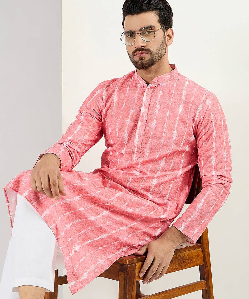 Men Peach Viscose Rayon Abstract Embroidered Chikankari Straight Kurta