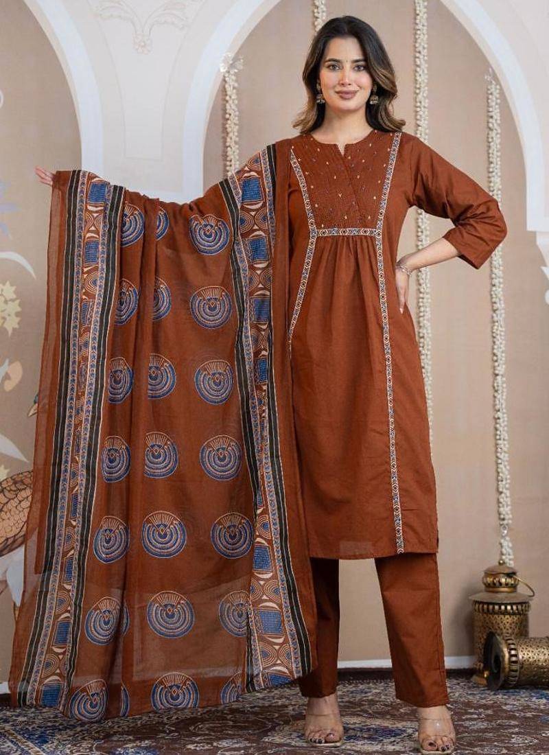 Cotton Cambric A Line Kurti Pant Dupatta Set