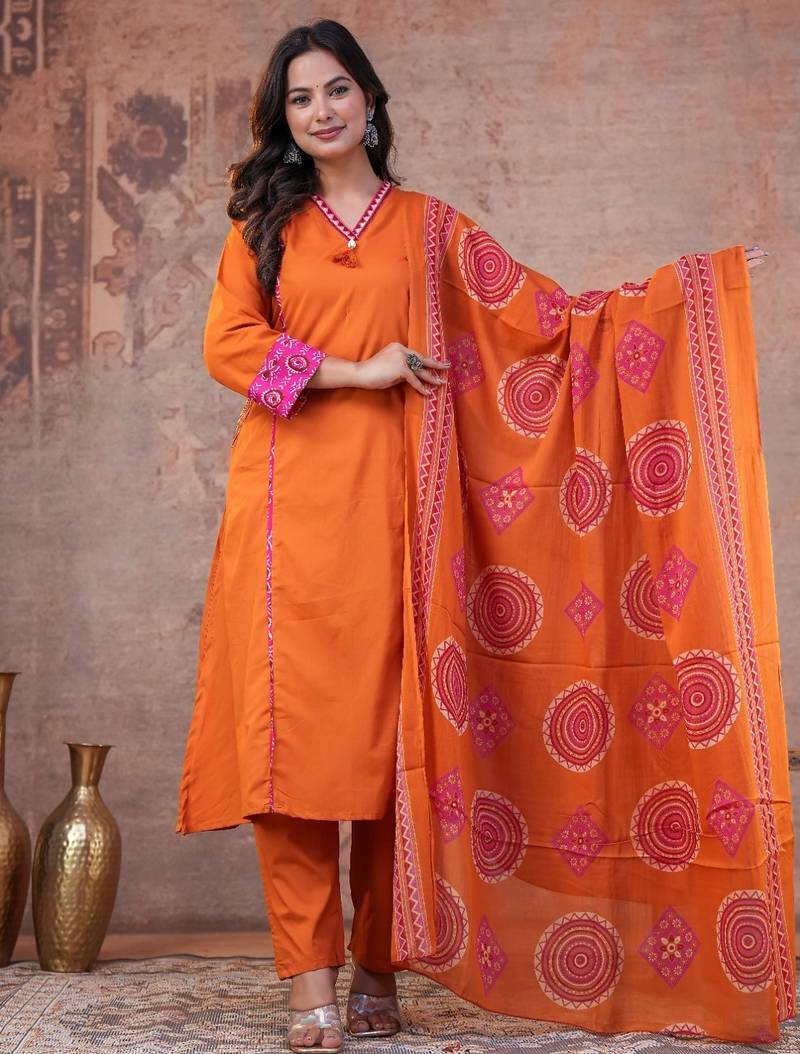 Cotton Cambric Printed A Line Kurti Pant Dupatta Set