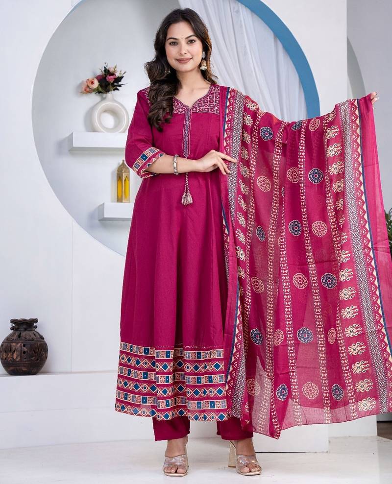 Cotton Cambric Printed Anarkali Kurti Pant Dupatta Set