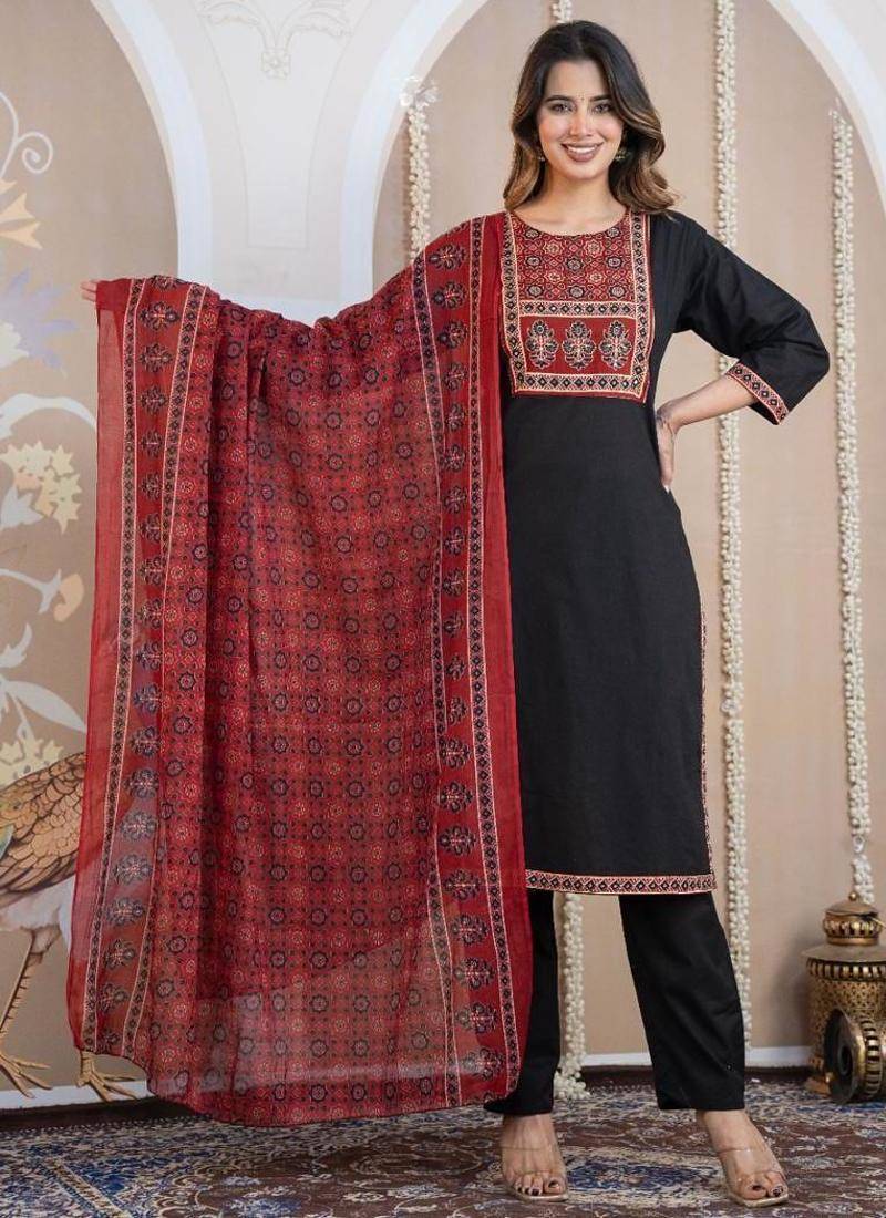 Premium Quality Cotton Kurti with Beautiful Hand Work with Cotton Dyed Pant And Full size cotton mulmul printed dupatta