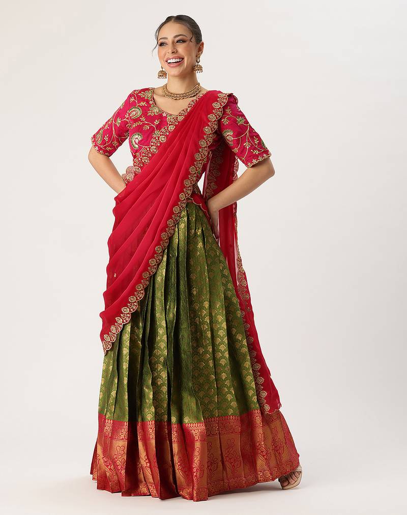• Dupatta : Color- Green / Fabric- Art Silk Dupatta Details