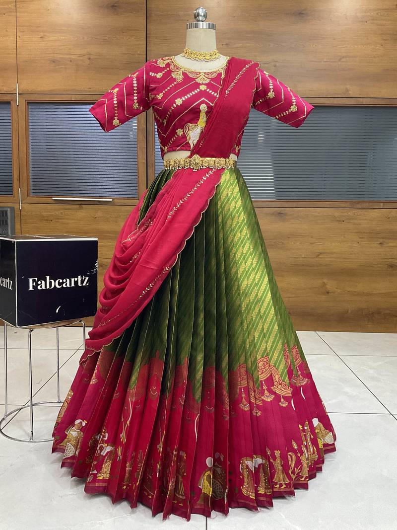 • Fabric : Art Silk • Work : Embroidered • Color : Green • Length : 2.4 Lehenga Details