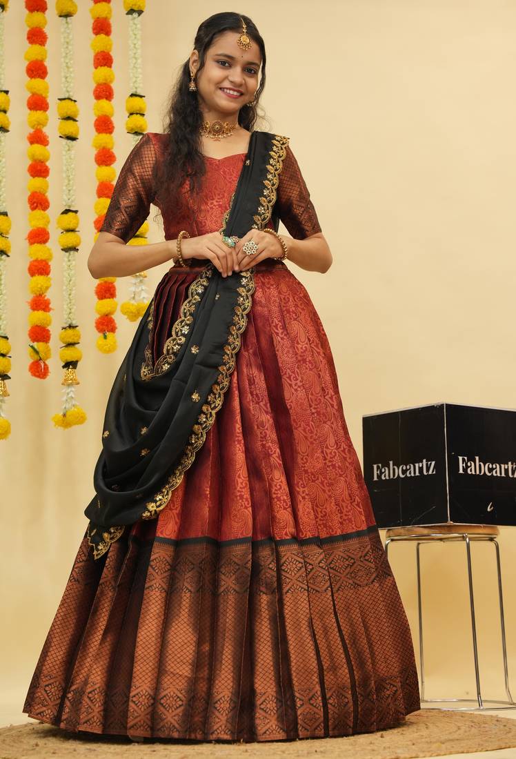 • Fabric : Art Silk • Work : Woven • Color : Maroon • Length : 2.4 Lehenga Details