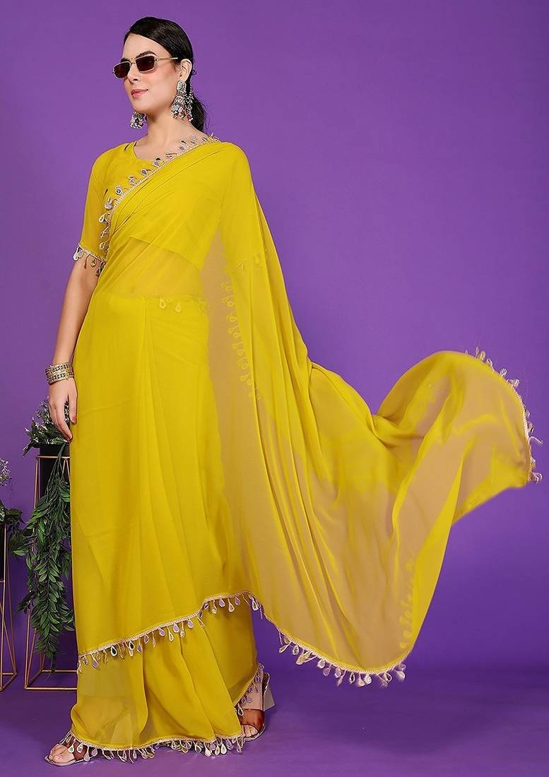 • Saree : Color- Yellow / Fabric- Georgette • Blouse : Color- Yellow / Fabric- Georgette Saree Details