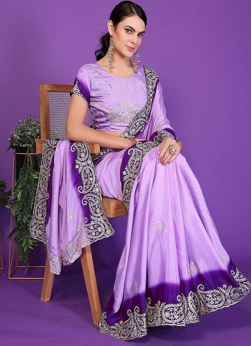 Lavender Wedding Party & Festive Art Silk Embroidered Saree With Blouse