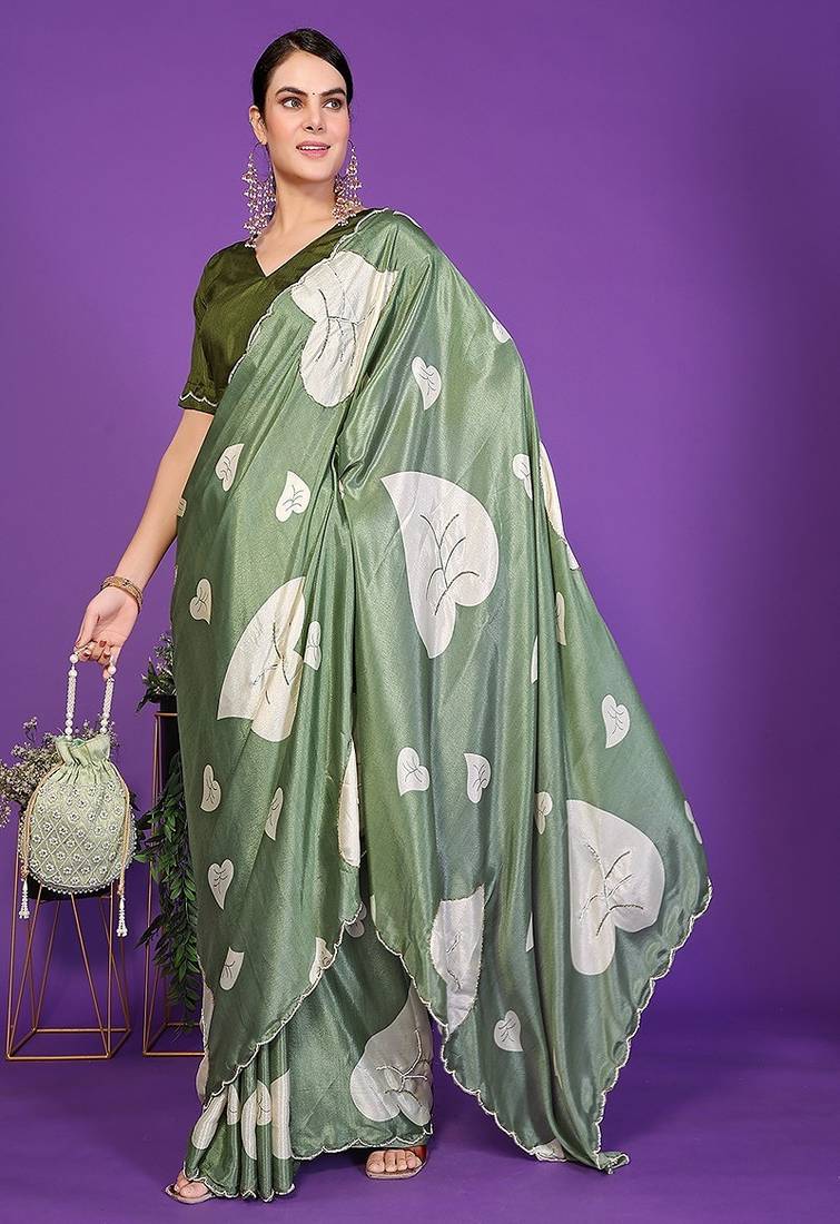 Green Wedding Party & Festive Art Silk Floral Print Saree With Blouse