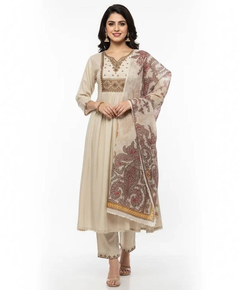 • Product Id : 4727362 • Package Details : 1 Kurta/ 1 Bottom/ 1 Dupatta • Type : Kurta Sets • Work : Embroidered • Sleeve : Half Sleeve • Color : Beige • Fabric : Chanderi Silk • Stitching : Stitched • Neck Style : Sweetheart Neck Kameez • Length : 40.0 Payments [+]