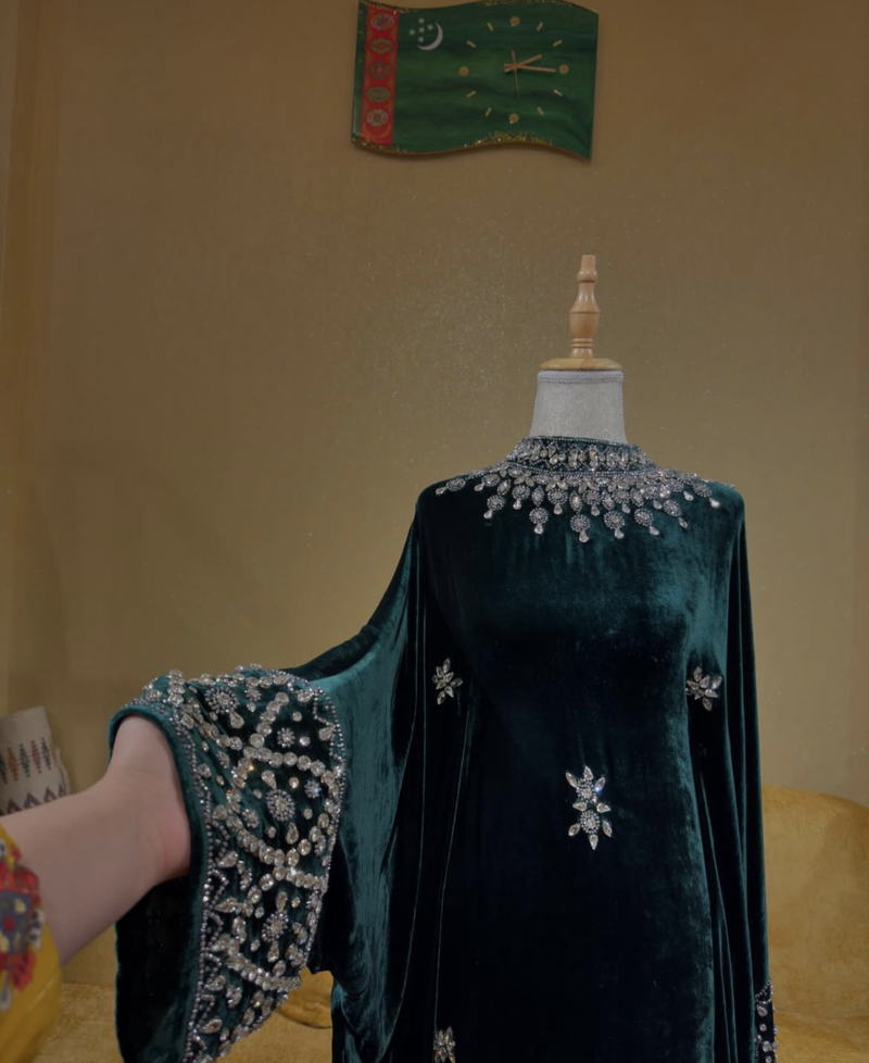 • Product Id : 4669031 • Package Details : 1 Kaftan • Type : Kaftans • Occasion : Wedding • Fabric : Velvet • Work : Embroidered • Type : Zari Work • Look : Traditional • Sleeve : Full Sleeve • Neck Style : Round Neck • Color : Green • Stitching : Stitched Stitching [+]