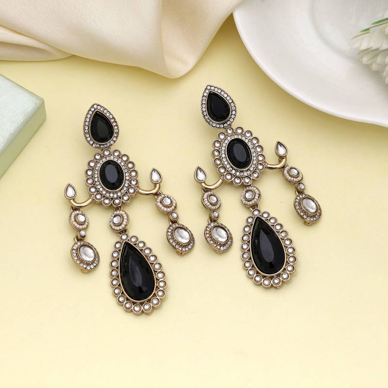 • Product Id : 4696632 • Package Details : 1 Pair Of Earring • Type : Earrings • Occasion : Wedding • Look : Designer • Jewellery Work : Kundan • Color : Black • Plating : Antique Gold • Base Material : Alloy • Piercing : No • Pearl Type : Na • Pearl Shape : Na • Speciality : Jewellry Can Be Used On Birthday, Marriage, Engagement, Any Occasion. • Care : Care Instruction : Avoid Heat & Chemicals Like Perfume, Deo, Alcohol, Etc. | Clean With Dry Cotton Cloth | Pack In An Air Tight Container After Use. • Finish : Glossy Payments [+]
