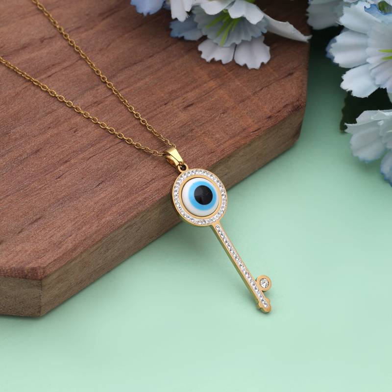 Blue Color Evil Eye Stainless Steel Anti Tarnish Necklace