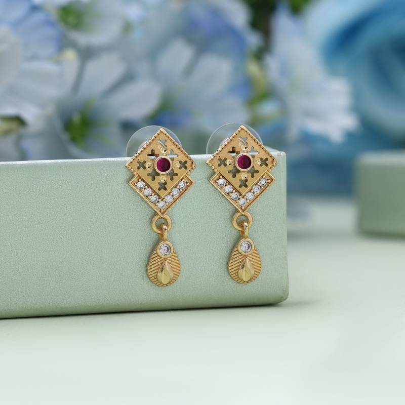 Earring Length: 2.70 CM x Width: 1.30 CM | Metal: Alloy With Good Quality Gold Plated | Color: Gold | Stone: Micro American Diamond | Gross Weight: 13.00 Grams | Package Content: 1 Pair Of Earring | Back Finding: Post With Friction Back x Earring Style: Drop