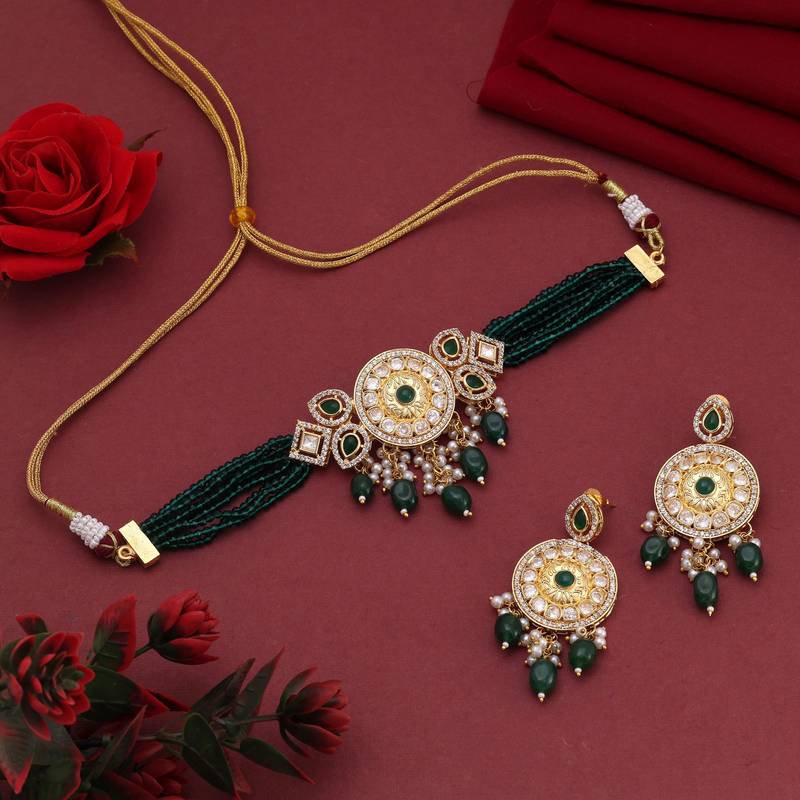 Adjustable Rope | Necklace Length: 19.00 CM x Width: 6.00 CM | Earring Length: 7.00 CM x Width: 3.20 CM | Metal: Brass With Good Quality Gold Plated | Color: Green | Stone: American Diamond & Imitation Pearl | Gross Weight: 92.00 Grams | Package Content: 1 Piece Of Necklace:: 1 Pair Of Earring | Back Finding: Post With Friction Back x Earring Style: Dangle