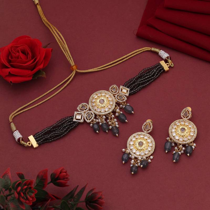 Grey Color Choker American Diamond Necklace Set