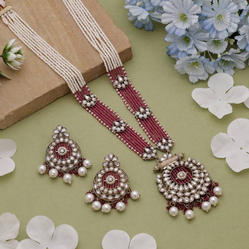 Adjustable Rope | Necklace Length: 42.00 CM x Width: 1.70 CM | Pendant Length: 7.00 CM x Width: 4.50 CM | Earring Length: 5.50 CM x Width: 3.10 CM | Metal: Alloy With Good Quality Mehandi Gold Plated | Color: Magenta | Stone: Kundan & Imitation Pearl | Gross Weight: 76.00 Grams | Package Content: 1 Piece Of Necklace::1 Pair Of Earrings | Back Finding: Post With Friction Back x Earring Style: Dangle
