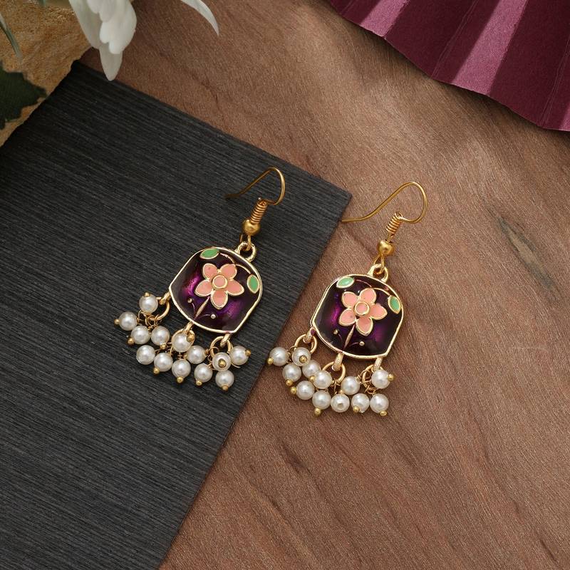Purple Color Meenakari Earrings