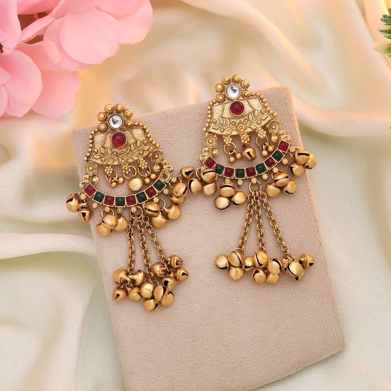 Earring Length: 8.00 CM x Width: 4.00 CM | Metal: Alloy With Good Quality Matte Gold Plated | Color: Rani & Green | Stone: Glass Stone | Gross Weight: 36.00 Grams | Package Content: 1 Pair Of Earring | Back Finding: Post With Friction Back x Earring Style: Dangle