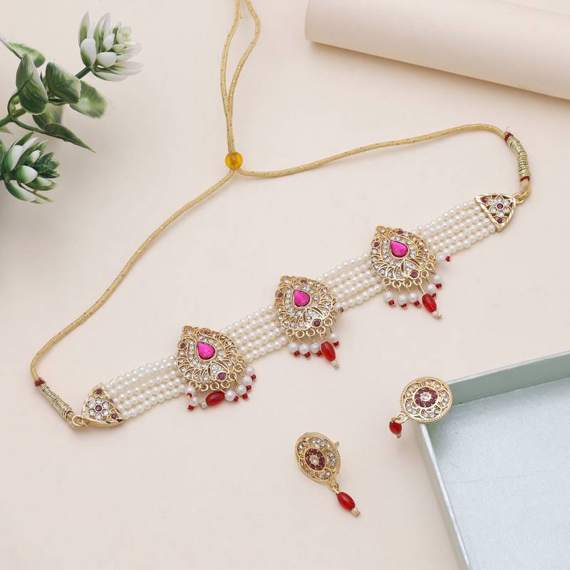 Adjustable Rope | Necklace Length: 18.00 CM x Width: 4.00 CM | Earring Length: 3.20 CM x Width: 1.70 CM | Metal: Alloy With Good Quality Gold Plated | Color: Rani & Red | Stone: Rhinestone & Beads | Gross Weight: 30.00 Grams | Package Content: 1 Piece Of Necklace::1 Pair Of Earring | Back Finding: Post With Friction Back x Earring Style: Drop
