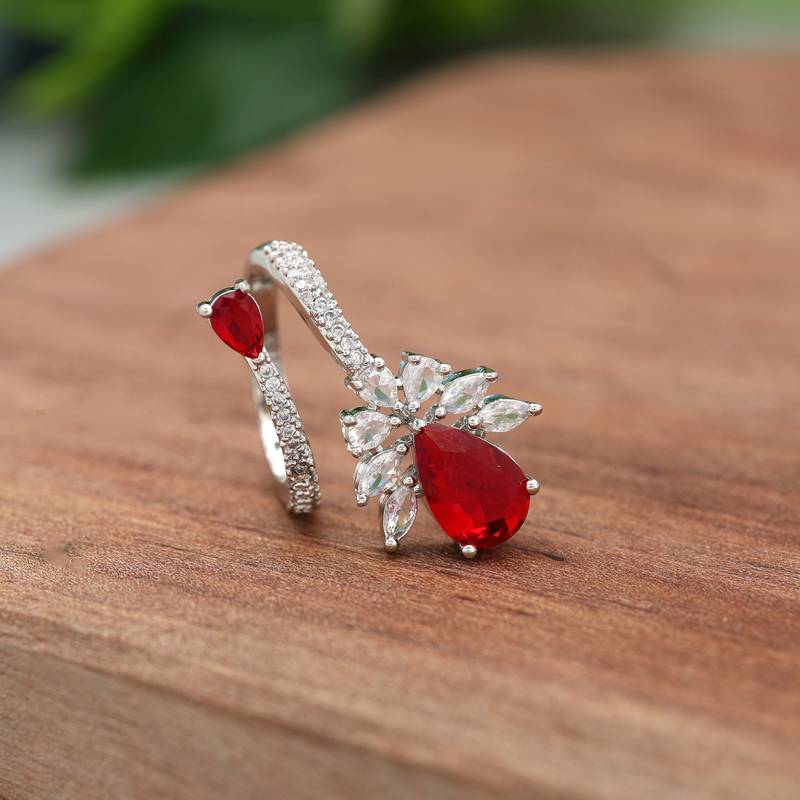 Ring Size: Adjustable | Metal: Brass With Good Quality Silver Plated | Color: Red | Stone: American Diamond | Gross Weight 6.00 Grams | Package Content: 1 Piece Of Ring