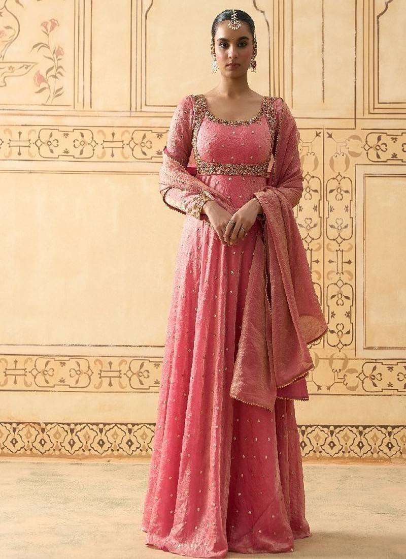 Onion Pink Hand Embroidered Anarkali With Dupatta