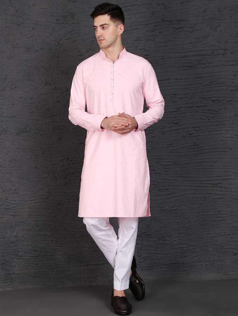 • Product Id : 4726309 • Package Details : 1 Kurta / 1 Pant • Type : Kurta Pajama • Occasion : Casual • Fabric : Cotton • Work : Plain • Look : Traditional • Bottom Style : Trouser • Sleeve : Full Sleeve • Neck Style : High Neck • Bottom Fabric : Cotton • Bottom Color : White • Color : Light Pink • Top Color : Pink • Top Fabric : Cotton • Stitching : Stitched Payments [+]