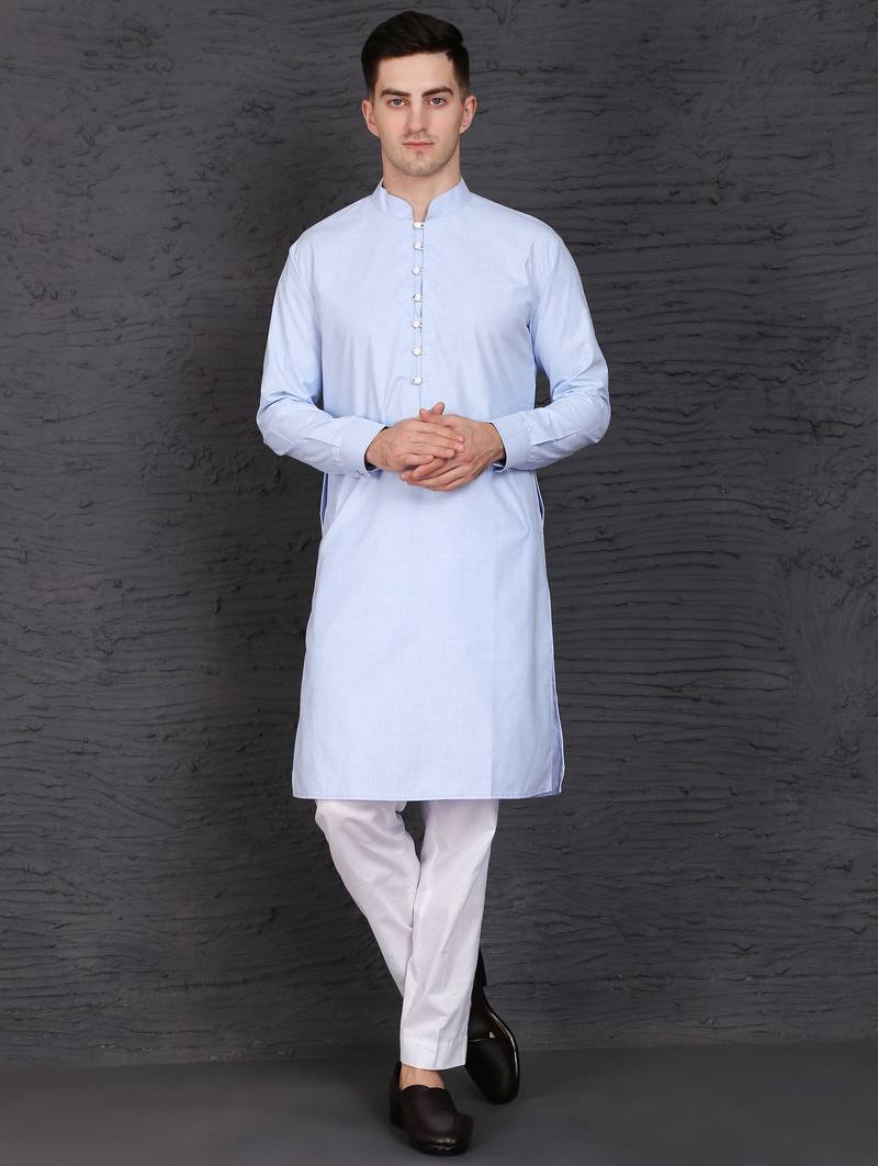 • Product Id : 4726301 • Package Details : 1 Kurta / 1 Pant • Type : Kurta Pajama • Occasion : Casual • Fabric : Cotton • Work : Plain • Look : Traditional • Bottom Style : Trouser • Sleeve : Full Sleeve • Neck Style : High Neck • Bottom Fabric : Cotton • Bottom Color : White • Color : Light Blue • Top Color : Blue • Top Fabric : Cotton,Cotton Silk • Stitching : Stitched Payments [+]