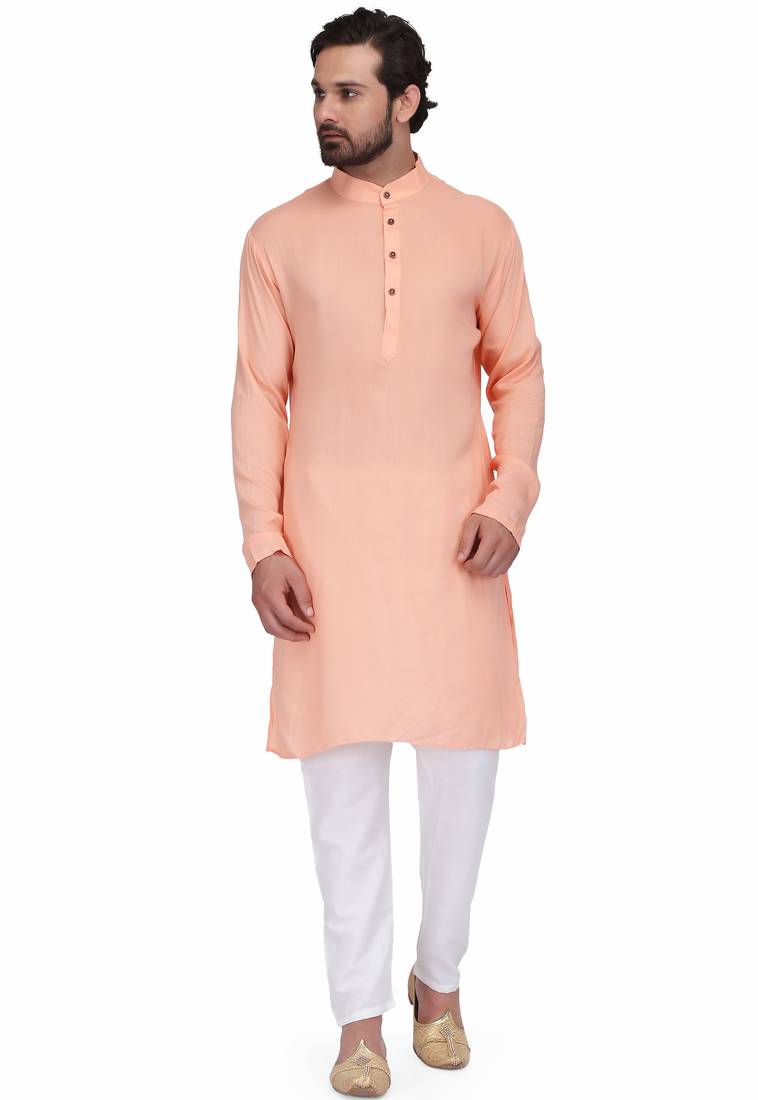 • Product Id : 4755485 • Package Details : 1 Kurta / 1 Pants • Type : Kurta Pajama • Region : Indian • Fabric : Rayon • Work : Plain • Look : Traditional • Bottom Style : Trouser • Sleeve : Full Sleeve • Neck Style : Chinese Collar Kameez • Bottom Fabric : Cotton • Bottom Color : White • Color : Dark Peach • Top Color : Pink • Top Fabric : Blended Cotton,Rayon • Stitching : Stitched General - Color and Texture may have slight variation. This happens because of photography.