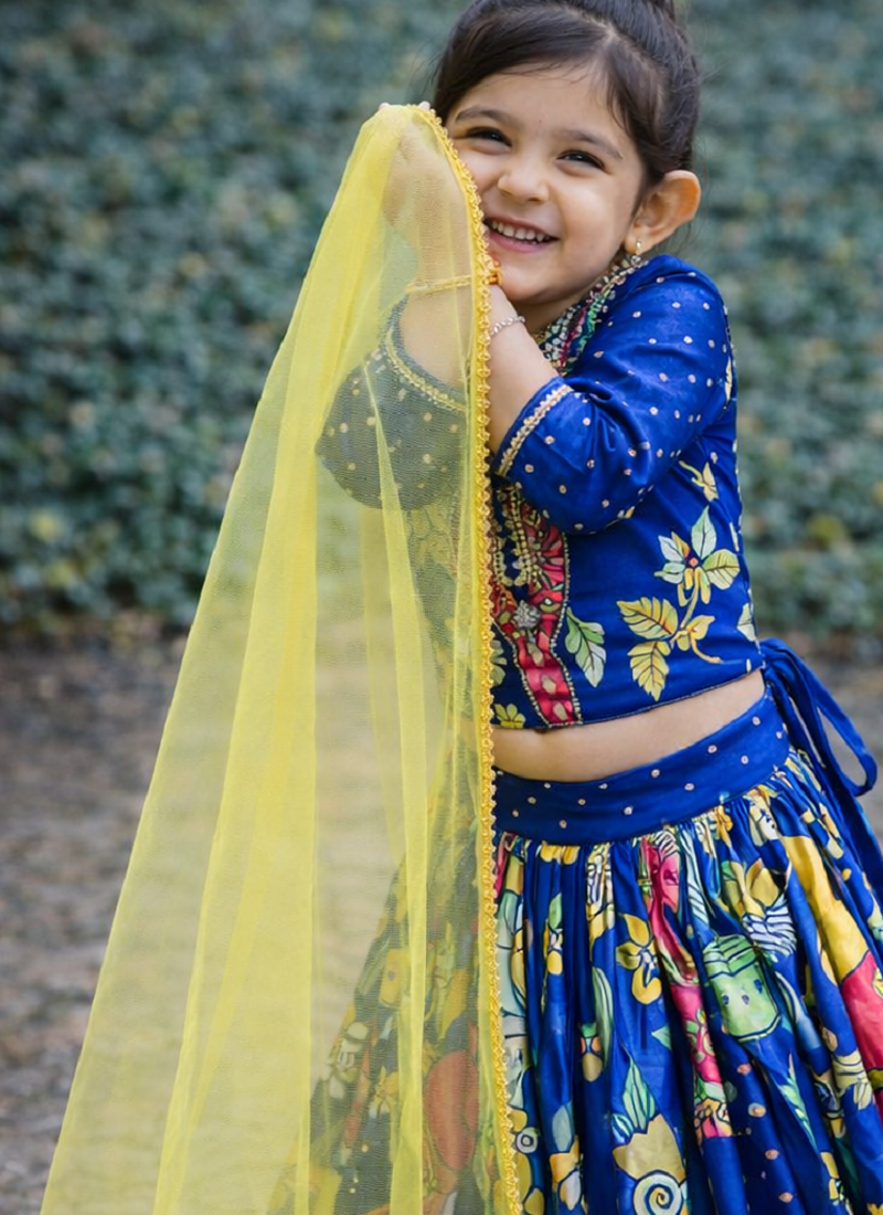 • Product Id : 4644239 • Package Details : 1 Lehenga/1 Choli/1 Dupatta • Type : Kids Lehenga Choli • Occasion : Festive • Work : Embroidered • Look : Fashion • Sleeve : Half Sleeve • Neck Style : U Neck • Bottom Fabric : Silk • Bottom Color : Blue • Top Color : Blue • Top Fabric : Silk • Chunari Color : Yellow • Chunari Fabric : Net • Bottom Style : Afghani • Stitching : Stitched • Gender : Girl • Chunari Length : 55 Inch Payments [+]