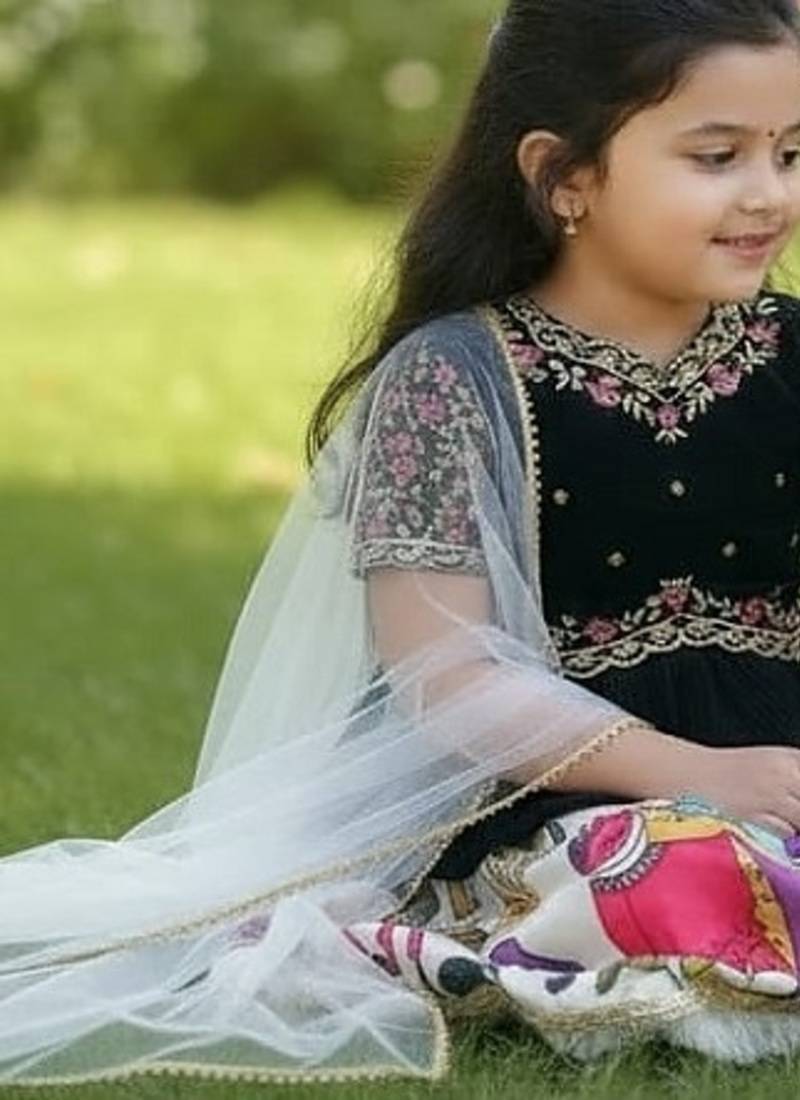 • Product Id : 4621682 • Package Details : 1 Kediya/1 Lehenga/1 Dupatta • Type : Kids Lehenga Choli • Occasion : Festive • Work : Embroidered • Type : Sequins Work • Look : Traditional • Sleeve : Short Sleeve • Neck Style : V Neck • Bottom Fabric : Silk • Bottom Color : Off White • Top Color : Black • Top Fabric : Silk • Chunari Color : White • Chunari Fabric : Net • Bottom Style : Afghani • Stitching : Stitched • Gender : Girl • Chunari Length : 55 Inch Payments [+]