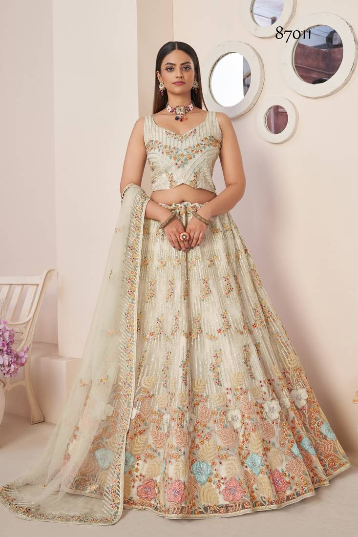 • Fabric : Net • Color : White • Work : Sequins • Length : 2.5 Lehenga Details