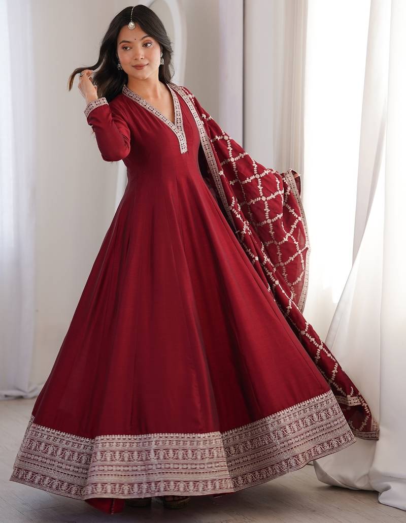 Heavy Blooming Vichitra Silk Full Flare Anarkali Gown With Dupatta Stitched