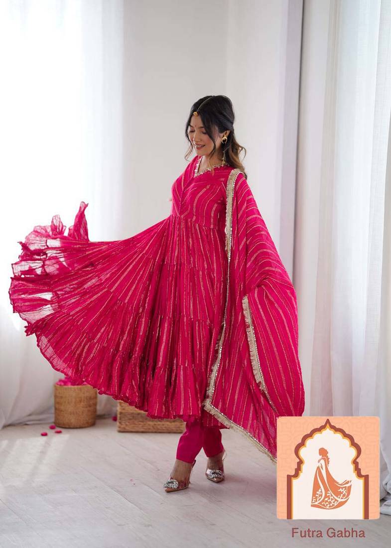 • Product Id : 4668695 • Package Details : 1 Gown 1 Bottom 1 Dupatta • Type : Kurta Sets • Occasion : Wedding • Type : Sequins Work • Look : Traditional • Sleeve : Full Sleeve • Neck Style : V Neck • Fabric : Chanderi • Color : Pink • Work : Lace • Stitching : Stitched Payments [+]