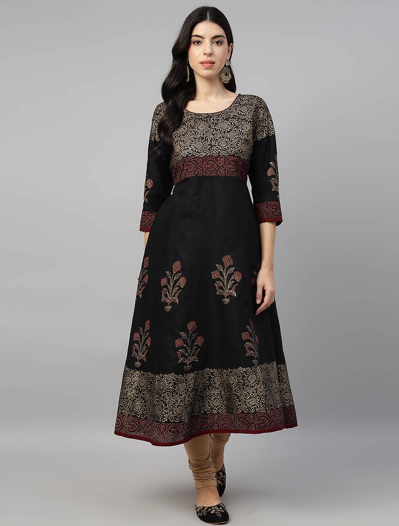 Black Cotton Printed Anarkali Kurta