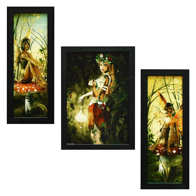 Three Fairys Wall Art Painting, Without Glass Multicolor 28.5 X 19 Inches (Combined) | Large, Set Of 3