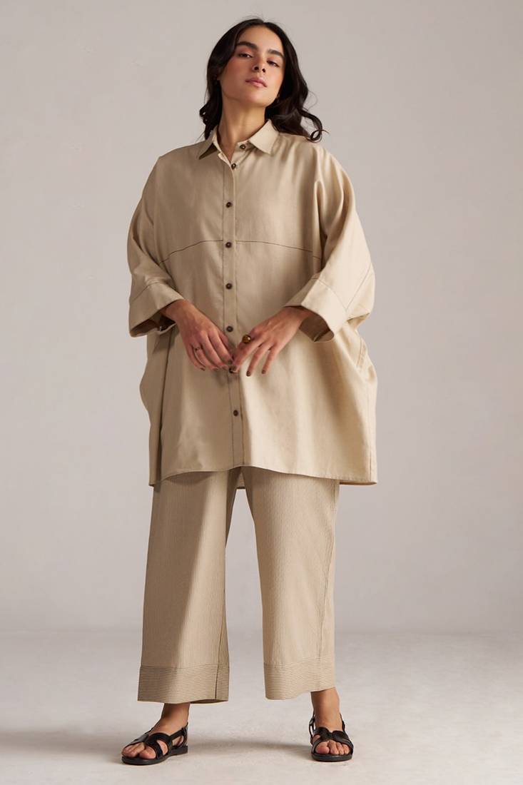 Brown Linen Co Ord Set With Full Sleeve Style