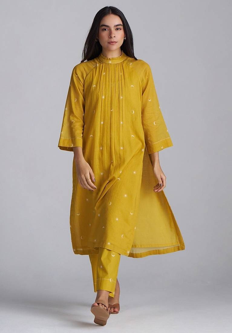 If you find the product for less we'll match it! Know Morethis nugget gold yellow co-ord set features soft cotton mul mul fabric for breathable comfort and lightweight wear. the full-sleeve top with a plain design is paired with matching bottoms for a coordinated two-piece outfit. the vibrant yellow color offers versatility for casual or indoor occasions while maintaining a minimal, structured aesthetic. designed with regular length and clean lines, the set allows ease of movement and practical daily wear. its understated look makes it suitable for relaxed gatherings, home wear, or casual outings, providing a comfortable and cohesive outfit that balances simplicity with coordinated style.