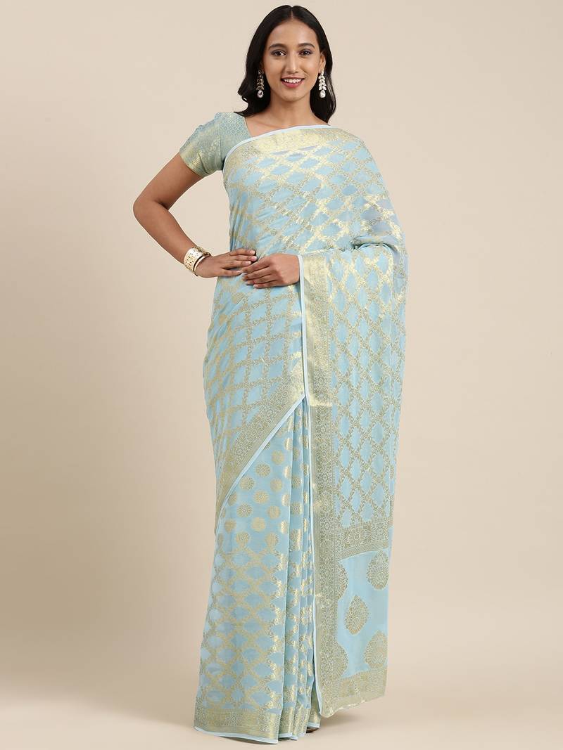 Geroo Jaipur Blue Zari Jaal Georgette Saree