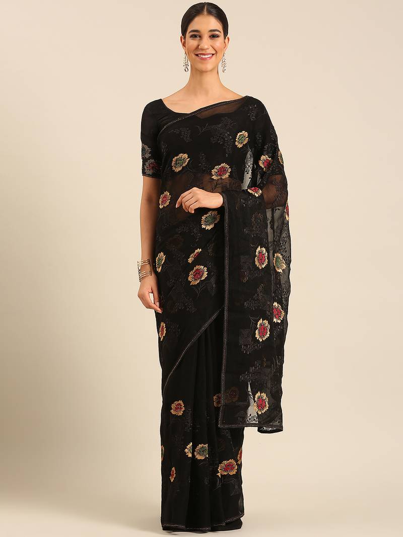 • Saree : Color- Black / Fabric- Chiffon • Blouse : Color- Black / Fabric- Chiffon Saree Details