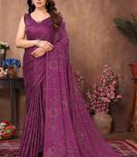 Purple Satin Silk Party Wear Saree With Blouse Piece