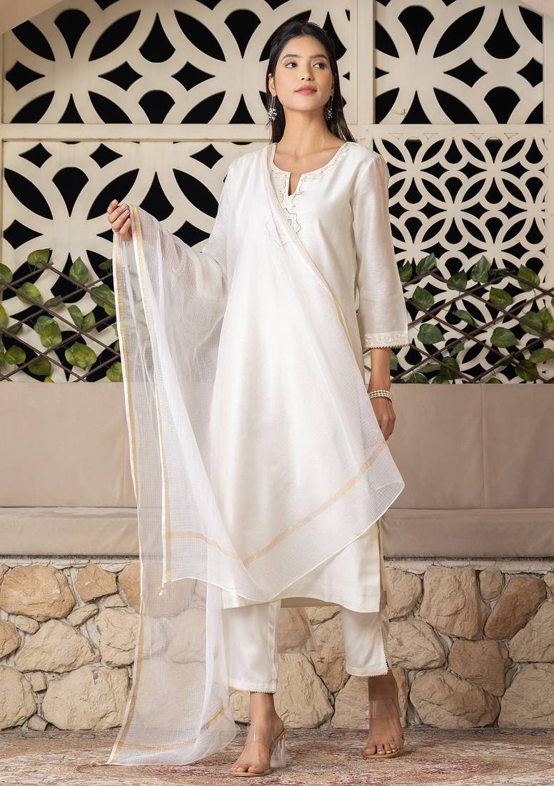 • Product Id : 4730299 • Package Details : 1 Top / 1 Bottom • Type : Long Kurti Designs • Work : Printed • Type : Floral Print • Sleeve : Quarter Sleeve • Neck Style : V Neck • Color : Off White • Fabric : Chanderi Silk • Stitching : Stitched • Length : 45.0 Payments [+]