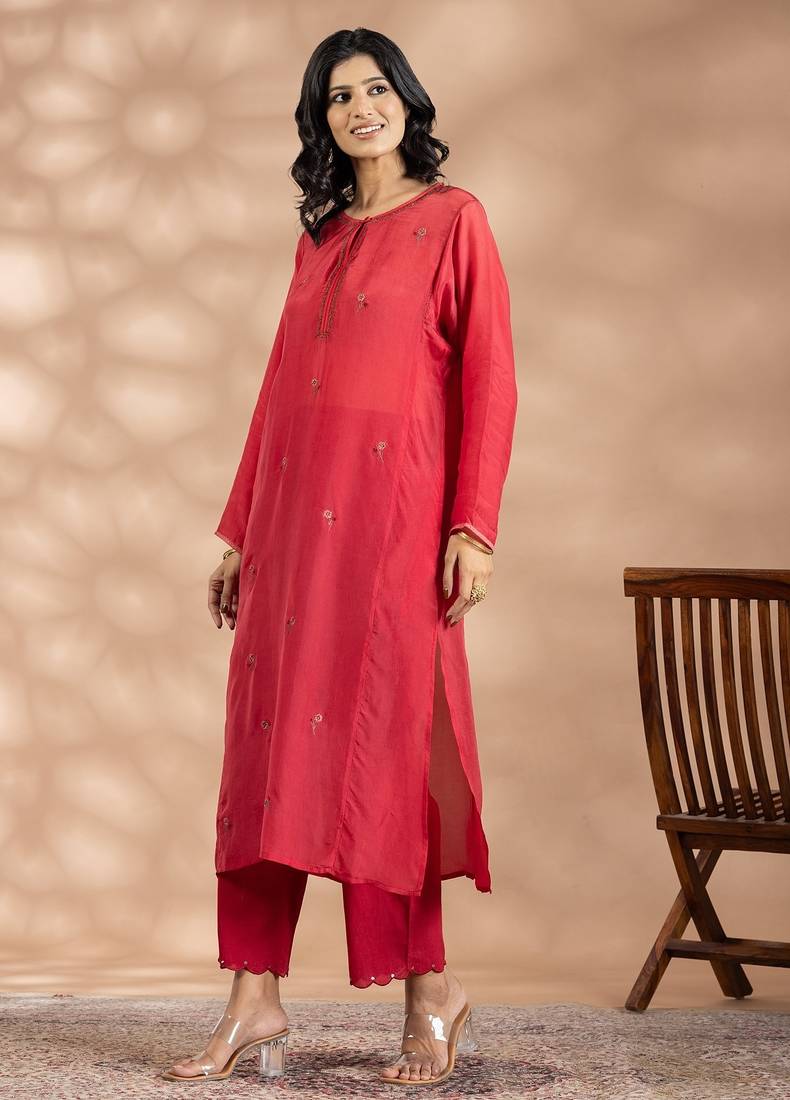 • Product Id : 4730282 • Package Details : 1 Top / 1 Bottom • Type : Kurta Sets • Fabric : Art Silk • Work : Printed • Type : Floral Print • Sleeve : Full Sleeve • Neck Style : Round Neck • Color : Red • Stitching : Stitched • Length : 45.0 Payments [+]